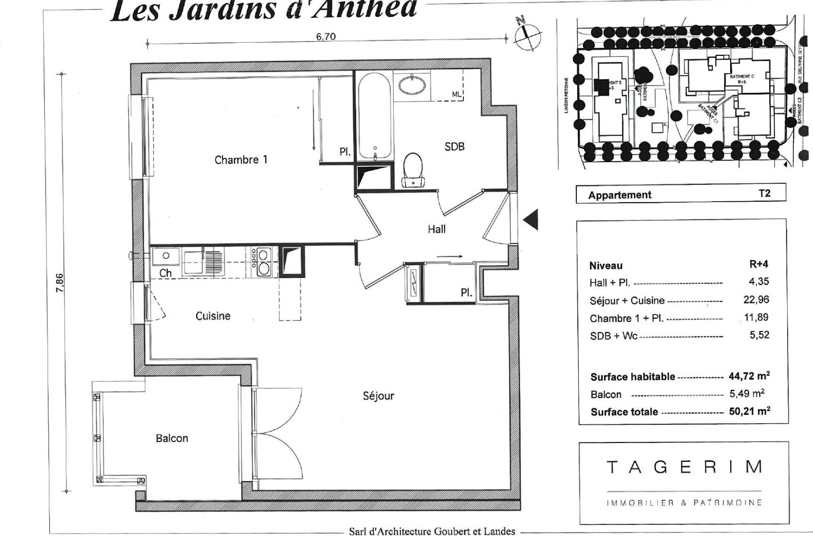 TOULOUSE - GRAND SELVE - T2 avec parking et vue dégagée - Résidence de 2016. - TOULOUSE, Résidence LES JARDINS D'ANTHEA située au 4 rue Delphine Seyrig, proche du SPORTING (restaurant, salle de sports, boulangerie, tabac). Bus TISSEO 61 - 60 - 29 à proximité. Métro BORDEROUGE à 6min en voiture. Appartement T2 au 4ème étage sur 5 d'une résidence de 2016, avec balcon de 5.49m² et une belle vue dégagée sur le parc et le coucher de soleil. Entrée avec placard, salon avec cuisine ouverte équipée, 1 chambre avec placard, 1 salle de bains avec 1 wc. 1 parking en sous-sol. Chauffage individuel et eau chaude individuelle au gaz. Résidence de 97 lots dont 45 lots principaux. Vendu libre de toute occupation. Le bien est soumis au statut de la copropriété , la copropriété comporte 45 lots , la quote-part budget prévisionnel (dépenses courantes) est de 974,00 euros/an.